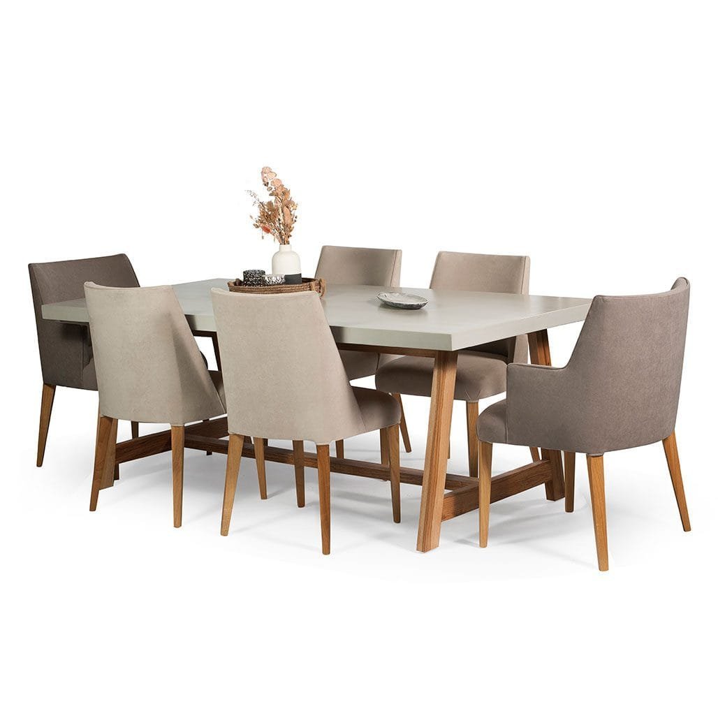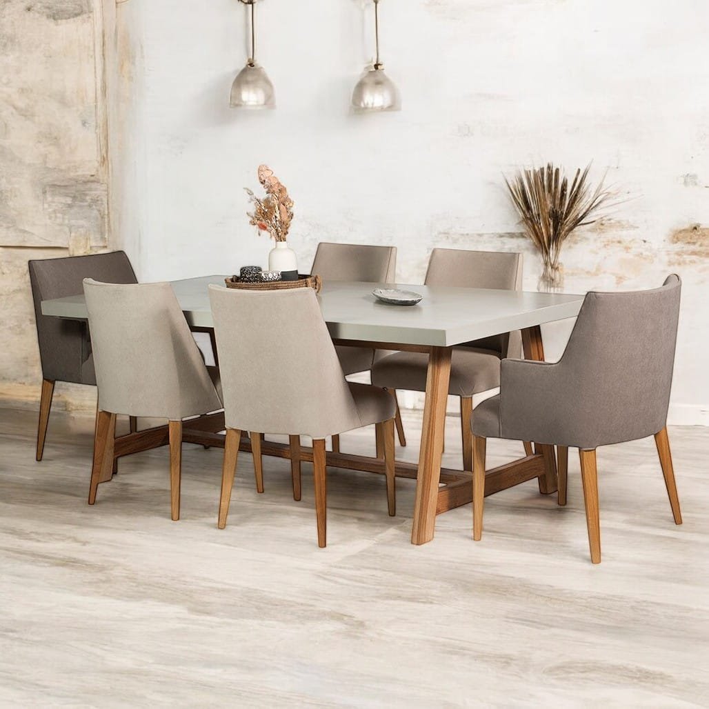 Nuestra mesa de comedor Cemento tiene  base  de madera maciza petiribi y tapa en micro cemento con una medida de 2m x 1 m